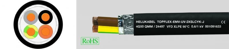 TOPFLEX®-EMV-UV-2XSLCYK-J для частотных преобразователей обеспечивает отличную электромагнитную защиту. Повышенная допустимая температура проводника (+90°C) позволяет ему выдерживать увеличенные токовые нагрузки по сравнению с PE-изолированными кабелями. Применяется в качестве кабеля подключения и соединительного кабеля при средних механических нагрузках, при стационарной прокладке и ограниченном свободном движении. Предназначен для сухих и влажных помещений, а также для прокладки на открытом воздухе; от маркоразмера 4G16 мм² возможна прокладка в земле. Используется в автомобильной, пищевой отрасли, на экологически чистых производствах, в упаковочной промышленности и в станкостроении. Применяется в манипуляторах, в механизмах SIMOVERT для насосов, вентиляторов, ленточных транспортеров, систем кондиционирования воздуха и т.п. Используется во взрывоопасных зонах.