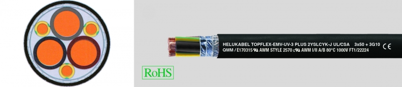 Характеристики — TOPFLEX®-EMV-UV-3 PLUS 2YSLCYK-J UL/CSA, кабель для двигателей 0,6/1kВ, для частотных преобразователей, с двойным экраном, с разметкой метража