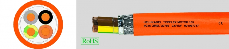 Характеристики — TOPFLEX®-MOTOR-EMV 103, кабель для подключения двигателей с низкой ёмкостью на 0,6/1kВ, повышенные токовые нагрузки, с разметкой метража