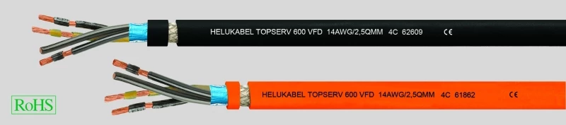 Гибкий силовой кабель для современных серводвигателей; двойное экранирование посредством плёнки из специального алюминия (100% покрытие) и лужёной медной оплётки (пр. 85% покрытие) обеспечивает хорошую защиту от электрических токов помех и возникающих в результате них перебоев в работе. Согл. NFPA 79 2007 допущен для открытой, незащищённой прокладки как в кабельных лотках, так и в промышленных установках. Специальная TPE-оболочка обладает хорошей стойкостью к маслам, хладагентам и растворителям и поэтому идеально подходит для промышленного применения при открытой прокладке, прокладки в трубах и земле.