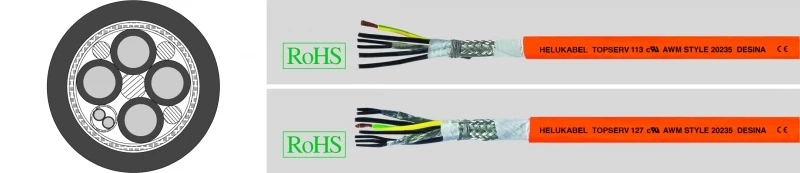 • Пригодные для буксируемых цепей кабели с PUR-оболочкой см. в описании TOPSERV®PUR.