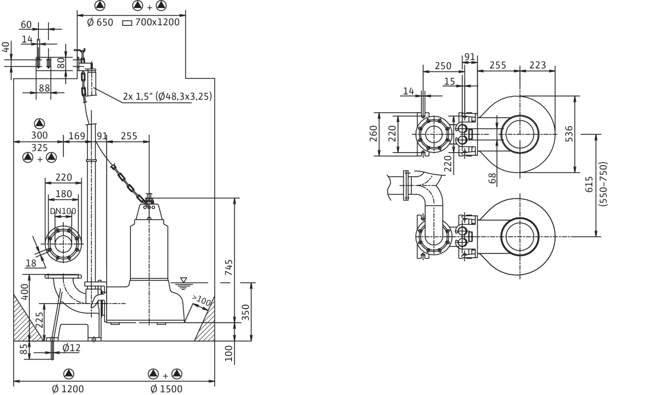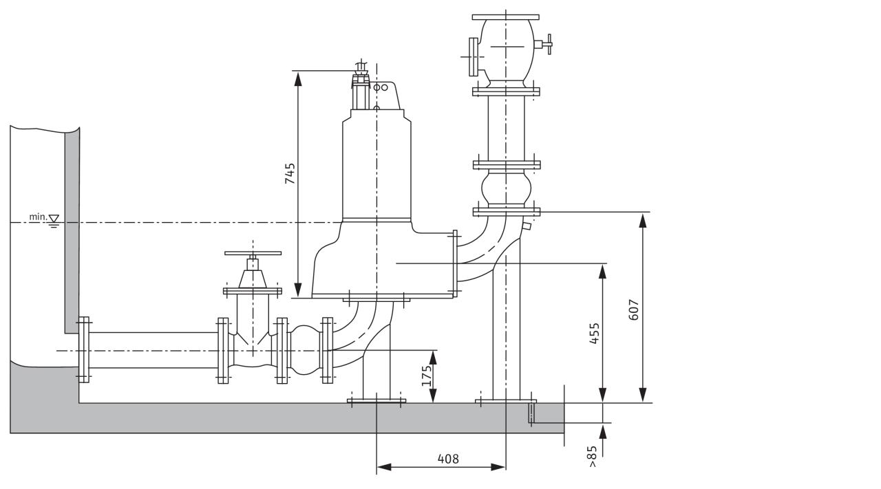 Wilo-Drain TP 100 (P2 от 3,9 кВт) – стационарная установка в погруженном состоянии