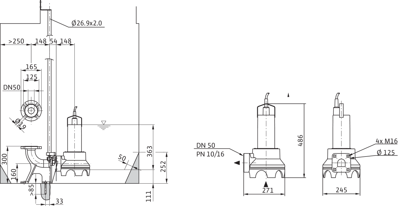 Wilo-Drain TP 50 - стационарная установка в погруженном состоянии