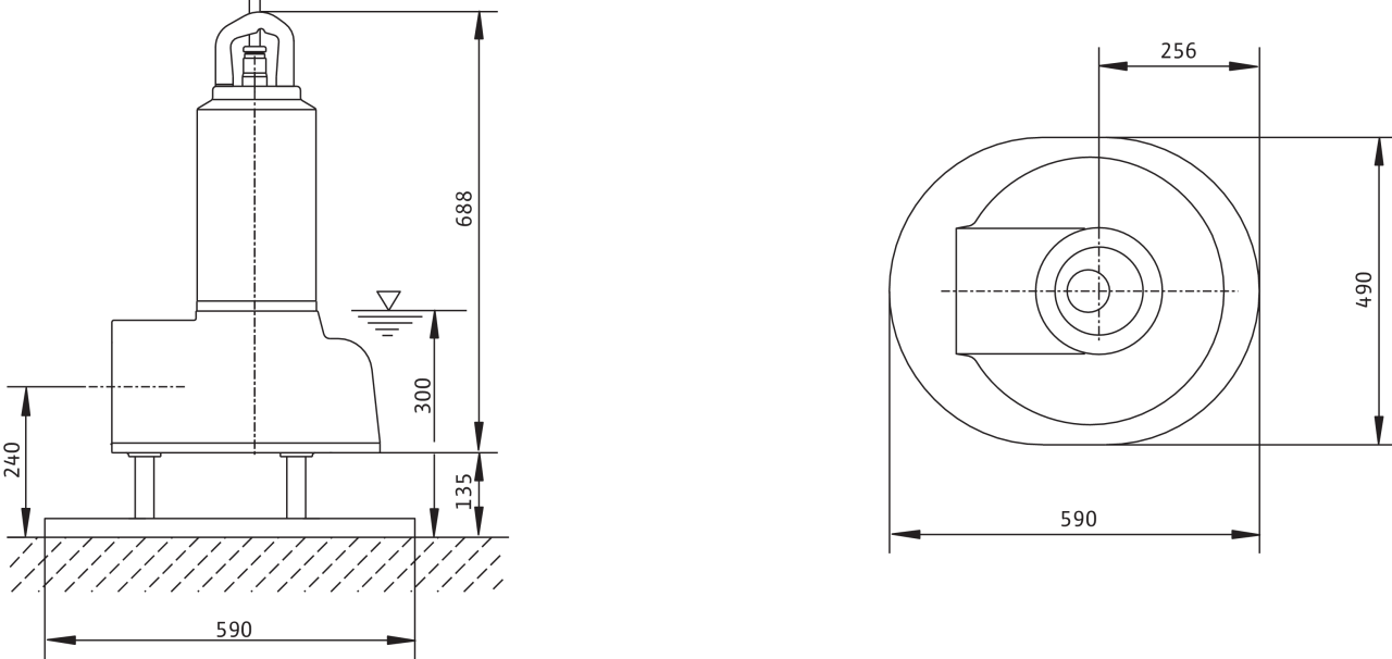 Wilo-Drain TP 80 - стационарная установка в непогруженном состоянии