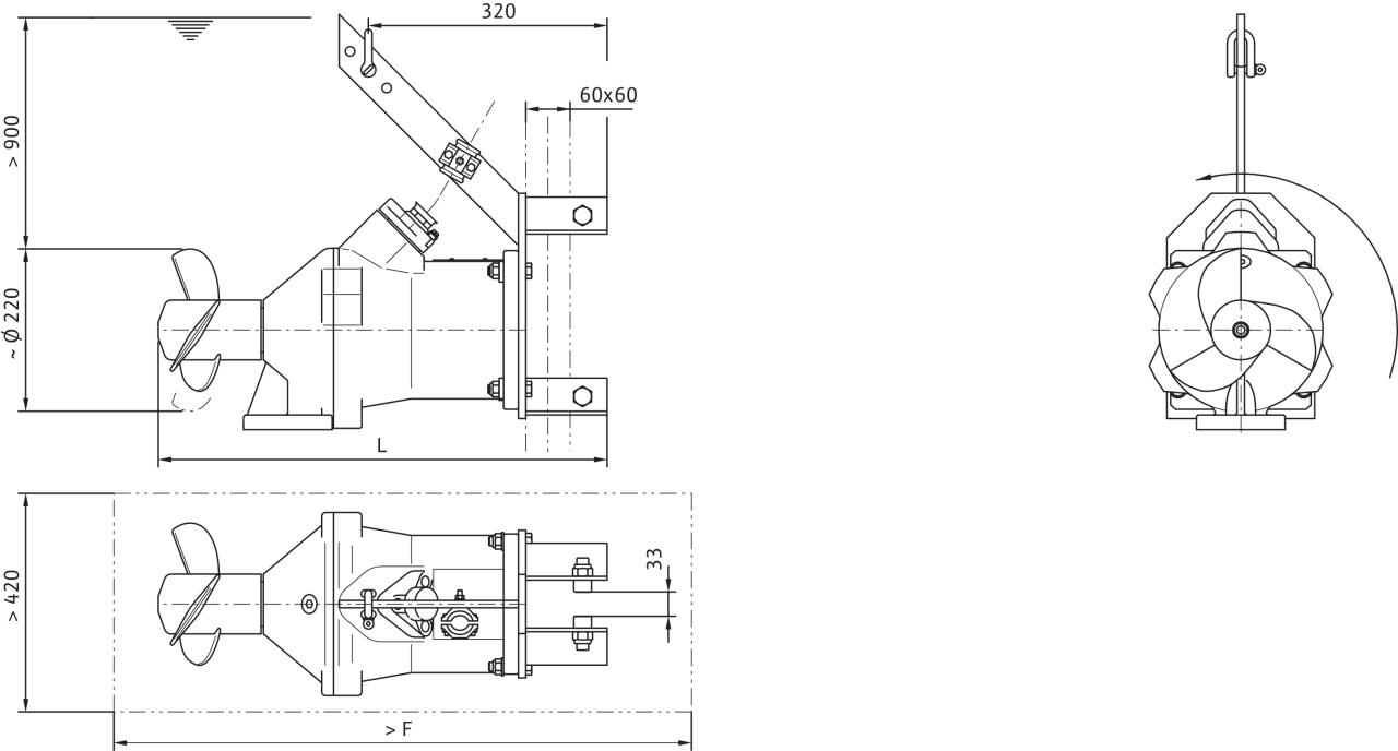 Тип пропеллера3-лопастный пропеллер с самоочищающейся ступицей; изогнут в обратном направлении; благодаря этому защищен от засорения и наматывания