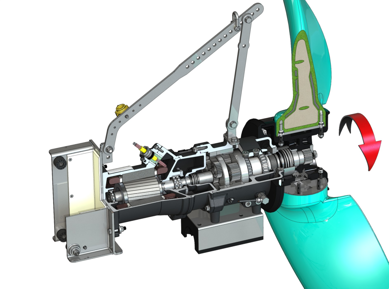 Тип пропеллера2-лопастный пропеллер с самоочищающейся ступицей; изогнут в обратном направлении; благодаря этому защищен от засорения и наматывания
