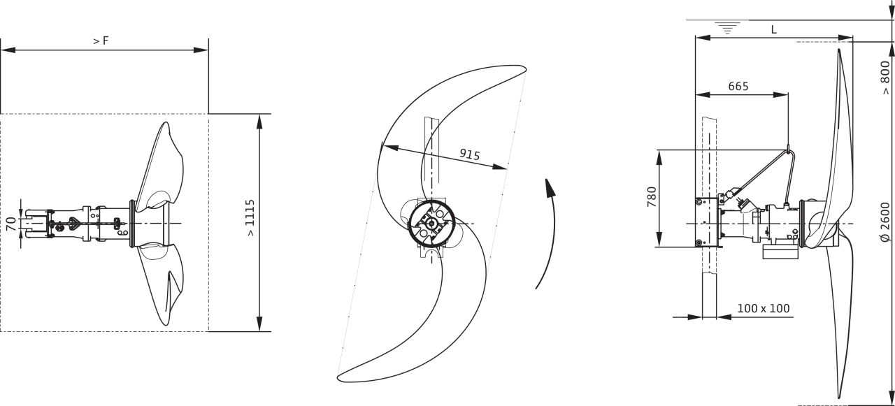 Номинальный внутренний диаметр пропеллера2600 мм