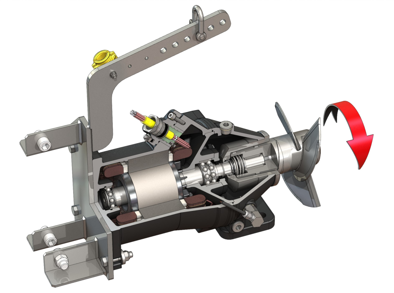 Тип пропеллера3-лопастный пропеллер с самоочищающейся ступицей; изогнут в обратном направлении; благодаря этому защищен от засорения и наматывания