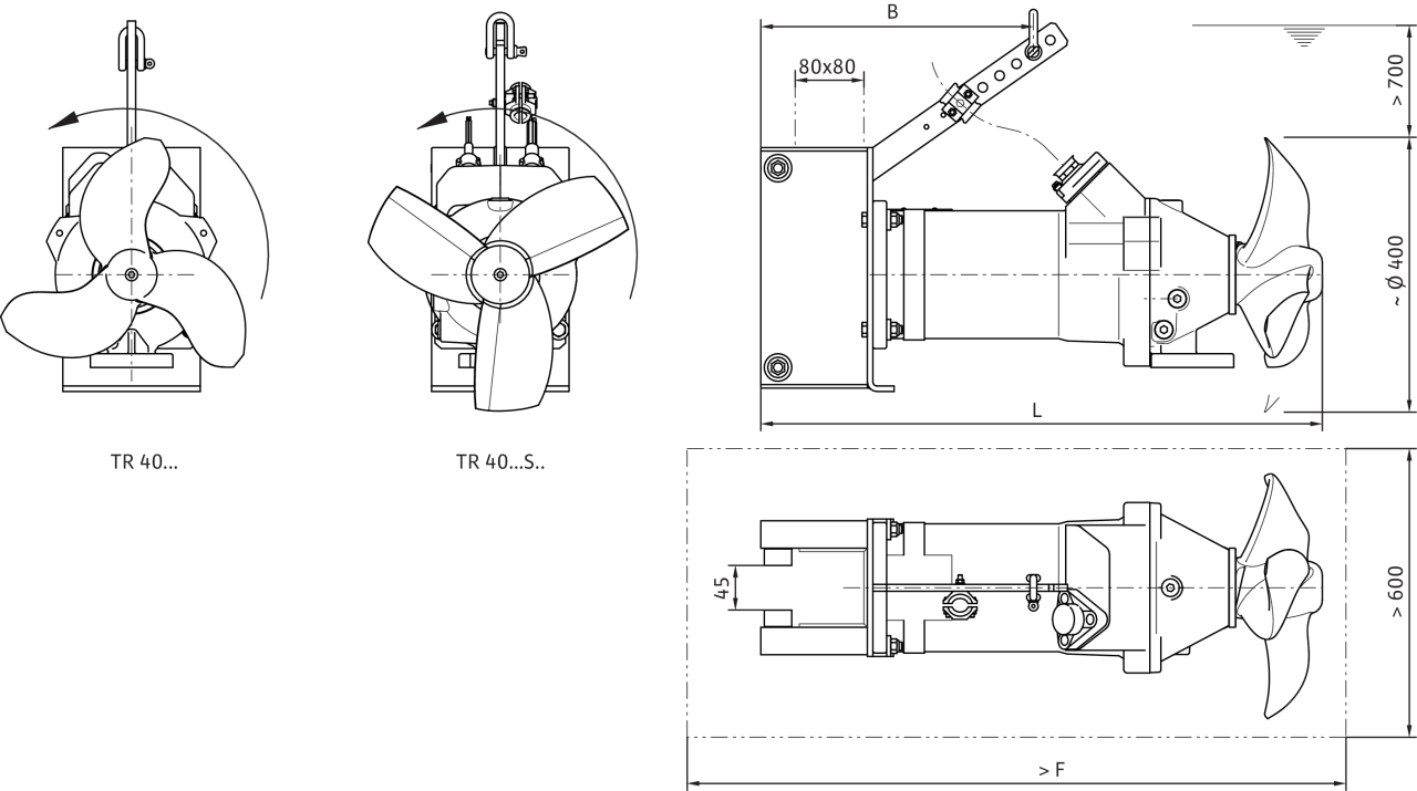 Тип пропеллера3-лопастный пропеллер с самоочищающейся ступицей; изогнут в обратном направлении; благодаря этому защищен от засорения и наматывания
