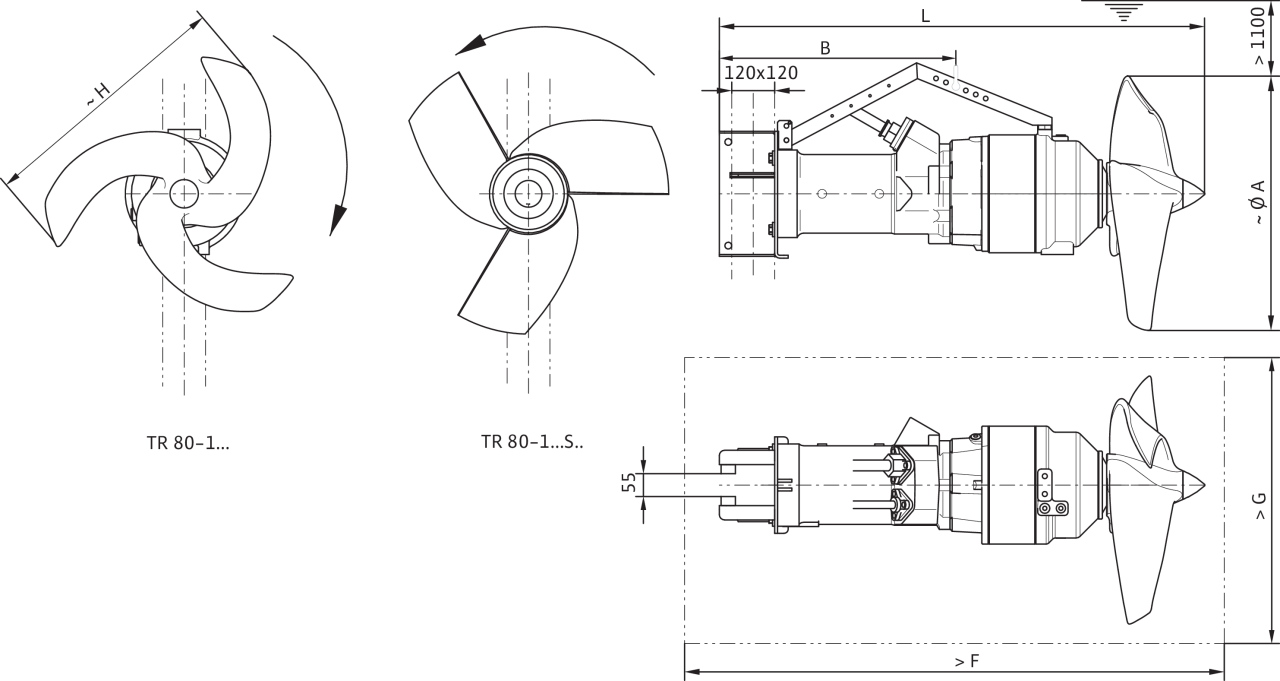 | Тип пропеллера | 3-лопастный пропеллер с самоочищающейся ступицей; изогнут в обратном направлении; благодаря этому защищен от засорения и наматывания |