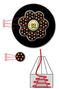 | FCA363F | 36x3,3/12AWG+FO* | 0,16 | 2,60 | 6,11 | 2000 | 46,6 | 49,6 | 3,800 | 750 |
