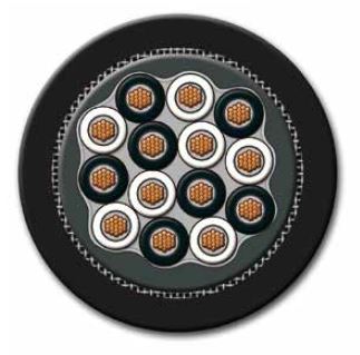 Кабеля управления, сигнализации и магистральные шины с требуемыми характеристикам пропускания для электрического и электронного оборудования, такого как измерительное, автоматическое, обработки данных и т.п., используемого в открытых горных разработках. Пригодны для прокладки вдоль конвейерных лент и на погрузочно-разгрузочном оборудовании