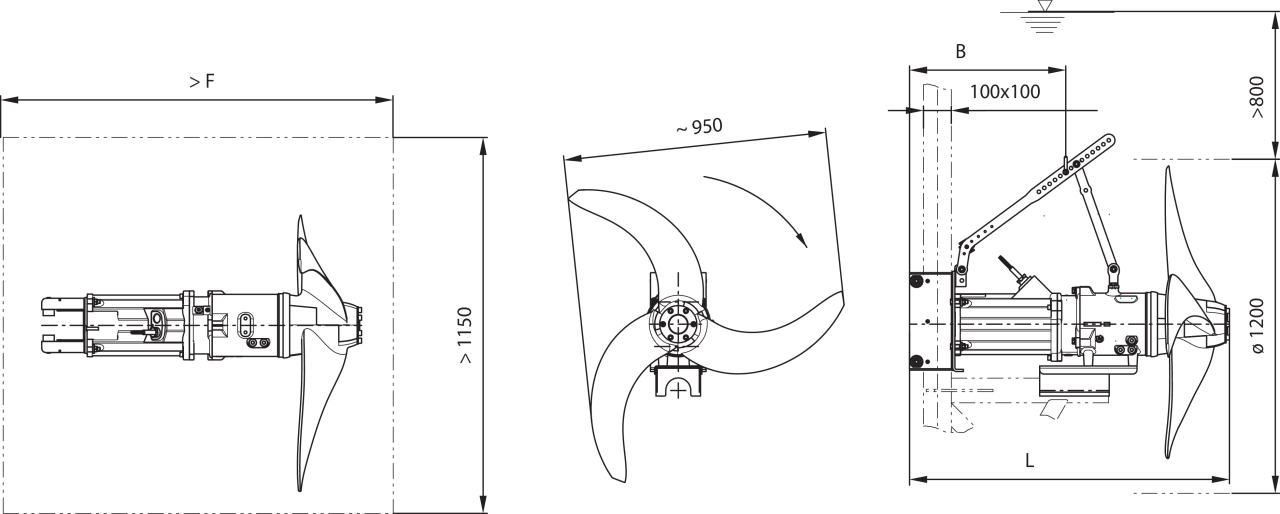 Тип пропеллера3-лопастный пропеллер с самоочищающейся ступицей; изогнут в обратном направлении; благодаря этому защищен от засорения и наматывания