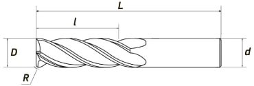 D - диаметр, R - радиус, l - рабочая длина, L - общая длина, d - диаметр головки