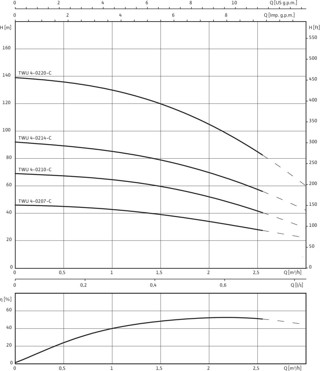Технический паспорт Характеристики Wilo-Sub TWU 4-02..-C Агрегат Макс. расход Q max 2.5 м3/ч Макс. напор H max 90.99999 M Макс. содержание песка ПЃ 50 г/м3 Минимальный индекс эффективности (MEI) ≥ 0.70 Напорный патрубок Rp 1Вј Стандарт подключения...