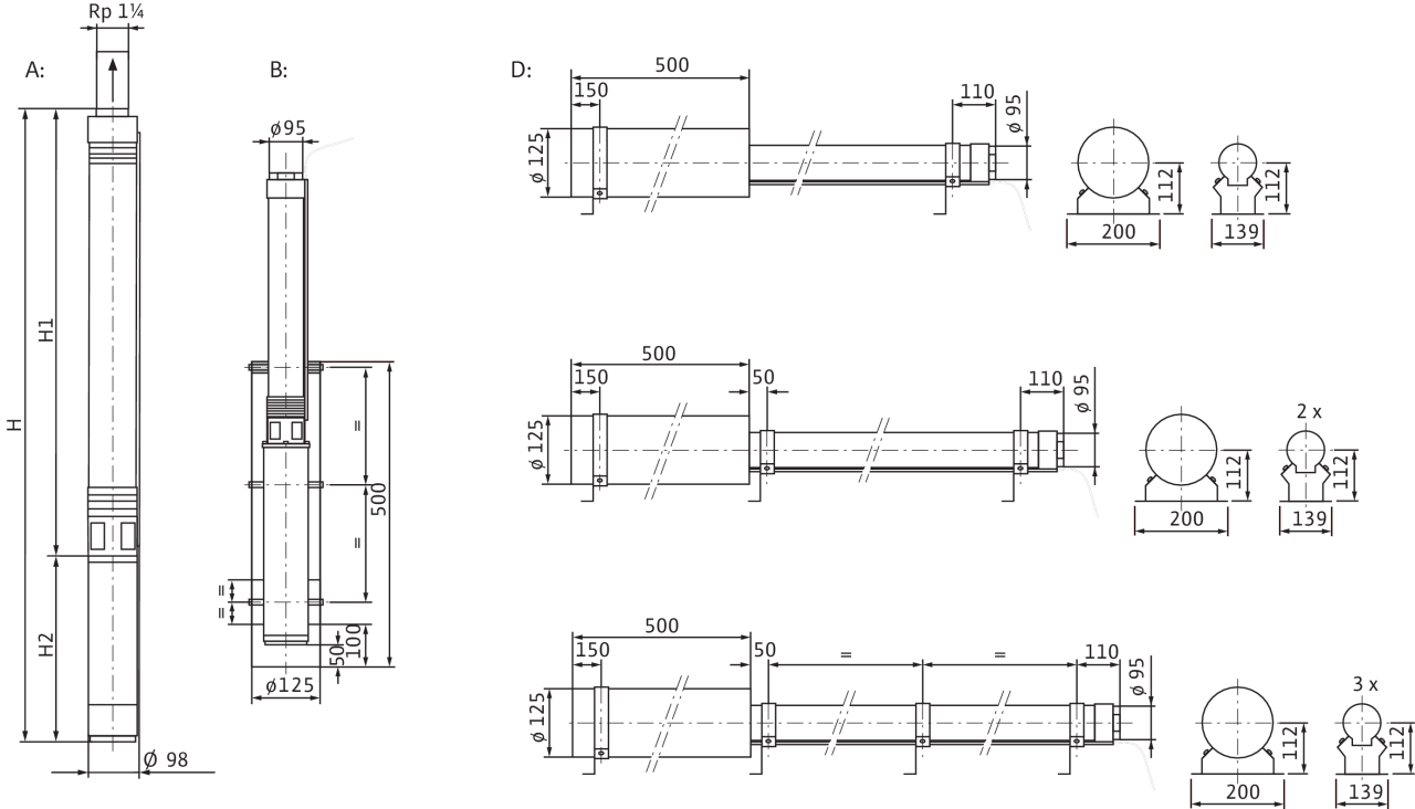 Установка для собственного водоснабжения в частном секторе для перекачиваемых жидкостей с содержанием песка до 50 г/м³ и глубиной погружения до 200 м, предназначенная для вертикального или горизонтального монтажа. Многоступенчатый погружной насос с радиальными рабочими колесами в секционном исполнении. Встроенный обратный клапан. Все детали, соприкасающиеся с перекачиваемой средой, выполнены из коррозионностойкого материала. Коррозионностойкий однофазный электродвигатель прямого пуска. Герметичный электродвигатель, пропитанный смолой, обмотка с изолирующей лакировкой, самосмазывающиеся подшипники, наполнение водогликолевой смесью. Охлаждение электродвигателя происходит за счет перекачиваемых жидкостей. Вертикальный монтаж можно выполнить с охлаждающим кожухом или без него — на выбор заказчика. Горизонтальный монтаж выполняется с охлаждающим кожухом.