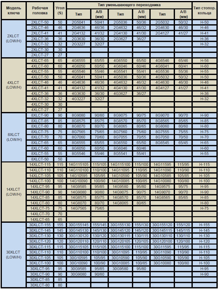 Уменьшающие переходники для серии LOW/XLCT/H.Высокопрочные уменьшающие насадки из хромомолибденовой стали