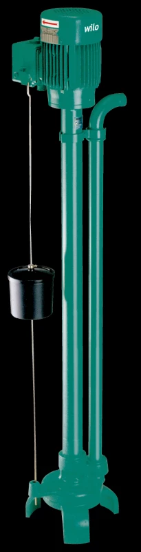 Вертикальный насос для грязной воды в стоечном исполнении для перекачивания горячей загрязненной воды (до 95 В°C), конденсата и незагрязненных жидкостей с твердыми материалами из насосных шахт котлов/систем отопления и подвалов, подвергающихся опасности затопления. Гидравлический корпус из серого чугуна, корпус электродвигателя из алюминия, рабочее колесо из стали или серого чугуна. Напорный патрубок с горизонтальным патрубком напорного слива и внутренней резьбой. Непогружной, не боящийся затопления стандартный электродвигатель IE2 в исполнении для однофазного или трехфазного тока. Защита электродвигателя и соединительный кабель устанавливаются заказчиком. Гидравлическая часть и электродвигатель неподвижно соединены защитной трубой вала. Установка насосного вала выполняется с помощью подшипников скольжения, смазываемых перекачиваемой средой. Встроенный поплавковый выключатель обеспечивает автоматическую работу насоса с контролем уровня.
