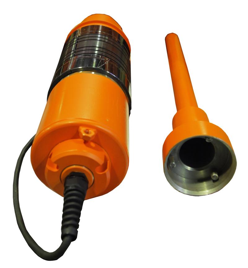 Вибратор представляет собой герметично закрытый корпус с внешней стороны имеющий цанговый зажим, с помощью которого надежно фиксируется внутри пуансона. Вибратор способен крепиться внутри пуансона с внутренним диаметром от 145 до 150 мм.