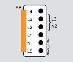 Выбор фазы позволяет осуществлять подключение любых однофазных цепей с отдельным нейтральным проводником (N/L1, N/L2, N/L3) или трехфазных цепей с общим нейтральным проводником (N/L1/N2/L3).