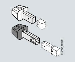 Фидерные устройства предназначены для питания линий и доступны как устройства ввода фидеров и фидерные устройства для подключения элементов нагрузки (ввод фидерного устройства с фиксирующим винтом и отсутствием концевой заглушки, оконечное фидерное устройство с подсоединенной заглушкой).