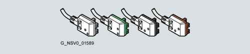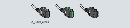 Существуют однофазные разъемы отхъодящих линий с прозрачной крышкой для выбора схемы подключений. Они могут использоваться на стандартных разъемах или закодированных разъемах подключения отходящих линий. Стандартный разъем для идентификации имеет серый цвет основания.