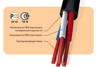 Кабель силовой с медными жилами, с поли- винилхлоридной изоляцией и оболочкой из поливинилхлоридных (ПВХ) композиций пониженной горючести, холодостойкий |