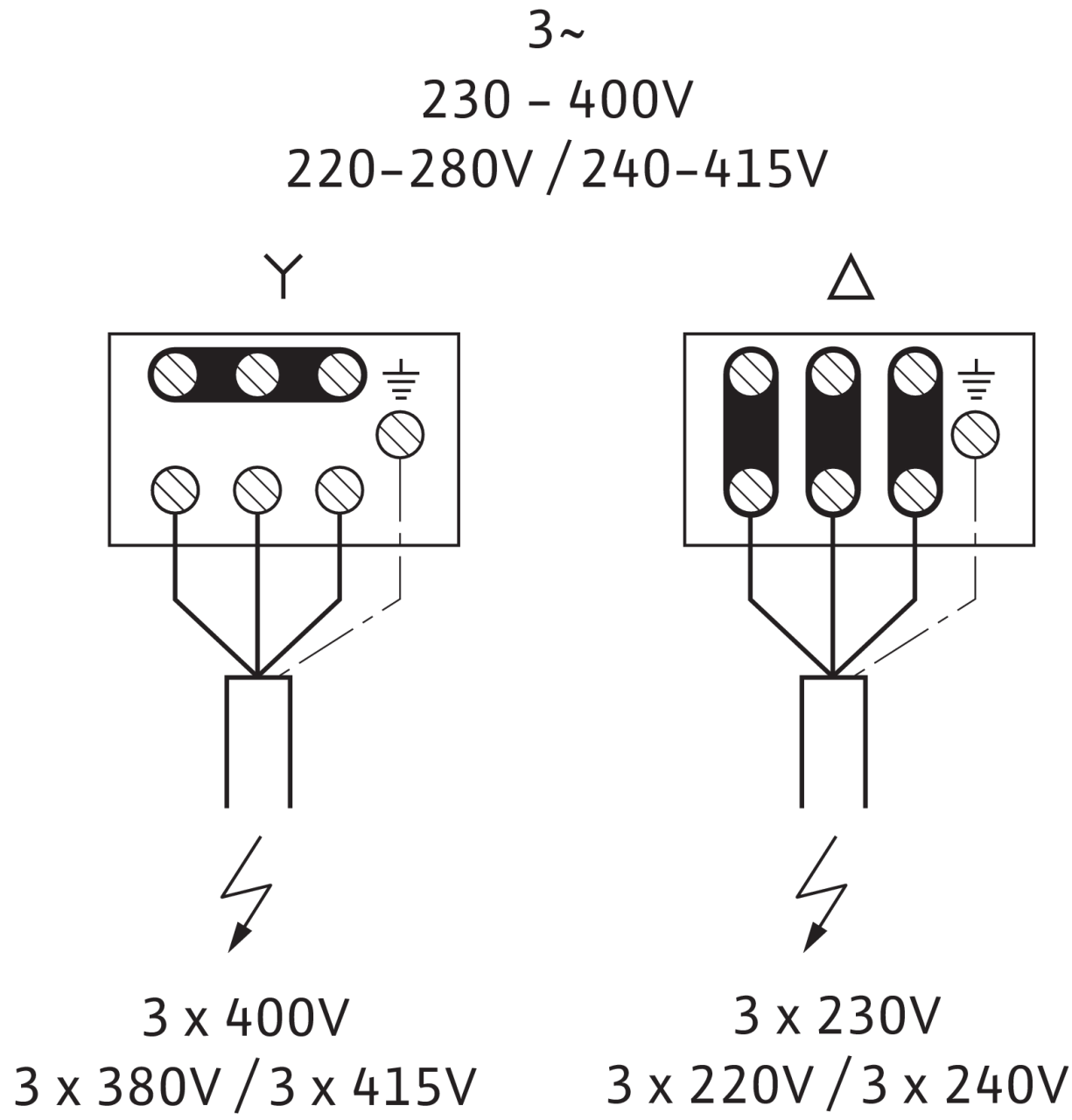 | Подключение к сети 3~: альтернативное применение без наценки U | 230 В |