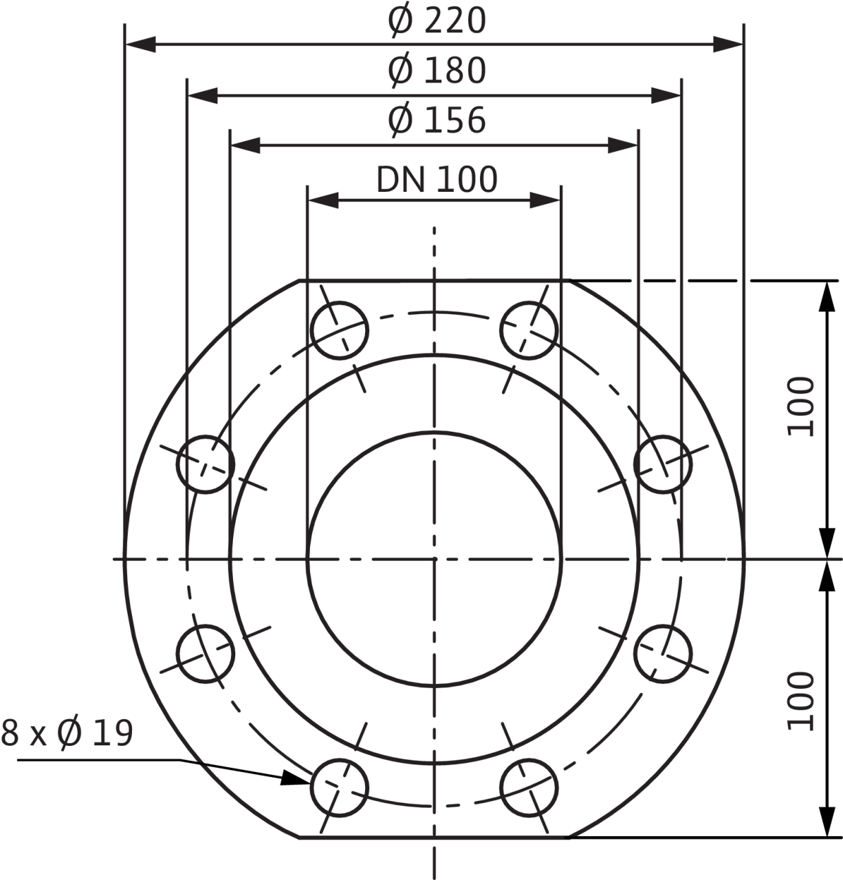 | Номинальный внутренний диаметр фланца | DN 100 |