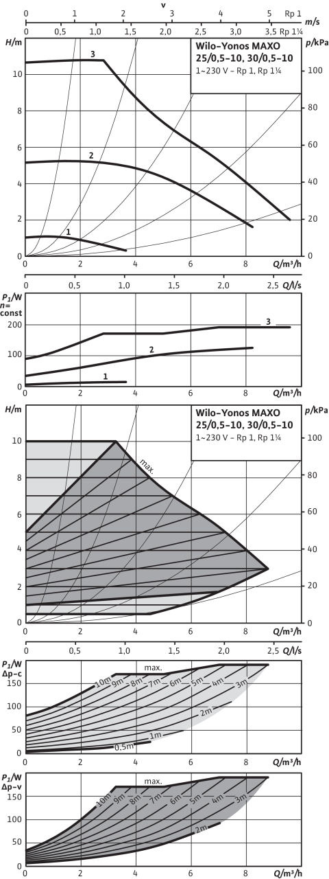 • Выбор режимов регулирования частоты вращения для оптимального распределения нагрузки: Δp-c (постоянный перепад давления), Δp-v (переменный перепад давления);