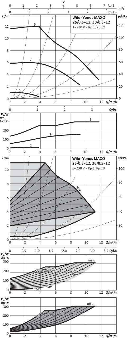 • Выбор режимов регулирования частоты вращения для оптимального распределения нагрузки: Δp-c (постоянный перепад давления), Δp-v (переменный перепад давления);