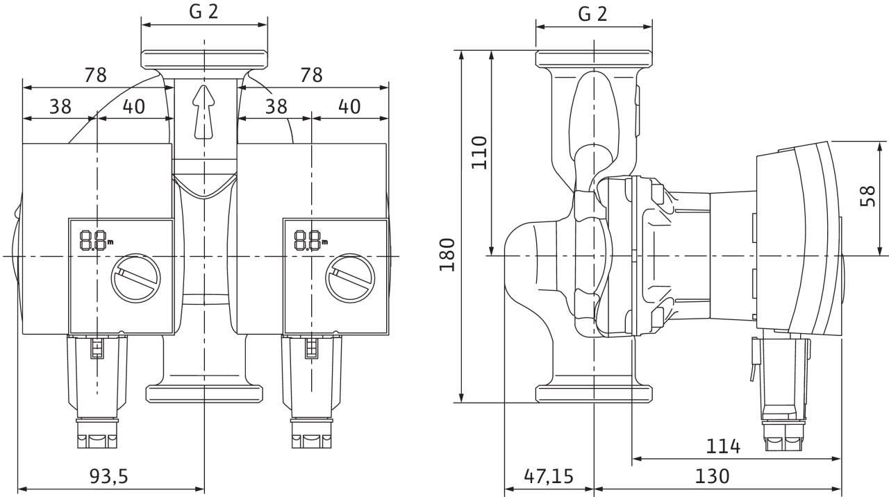 Каждый насос можно эксплуатировать в автономном режиме («основной/резервный» режим работы) или одновременно эксплуатировать оба насоса в режиме параллельной работы (режим работы двух насосов/режим пиковой нагрузки). Для реализации автоматического переключения при неисправности заказчик должен предоставить соответствующий прибор управления.