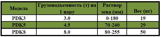 Предельная рабочая нагрузка – это максимальная нагрузка, которую смогут удерживать захваты во время парного использования при угле подъема 60 градусов. При подъеме захваты можно использовать парами или группами по мере необходимости.
