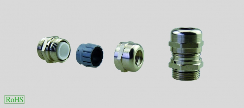 Cable gland with integrated pressure compensation and ventilation system. Prevents water condensation.