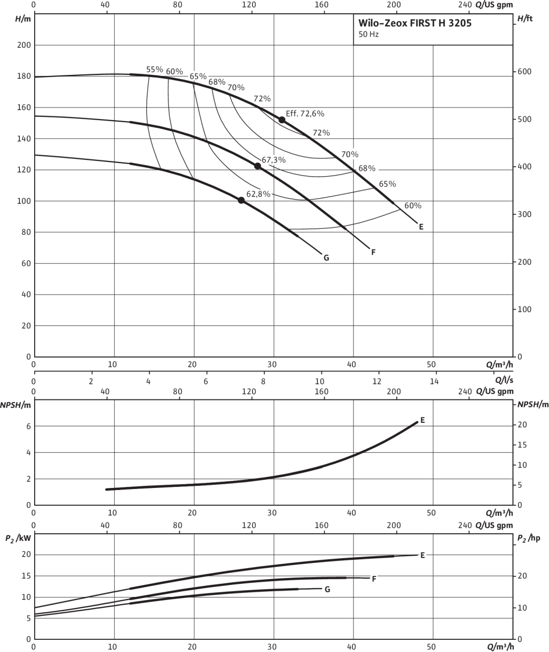 | Номинальный внутренний диаметр фланца (с напорной стороны) | DN 50 |