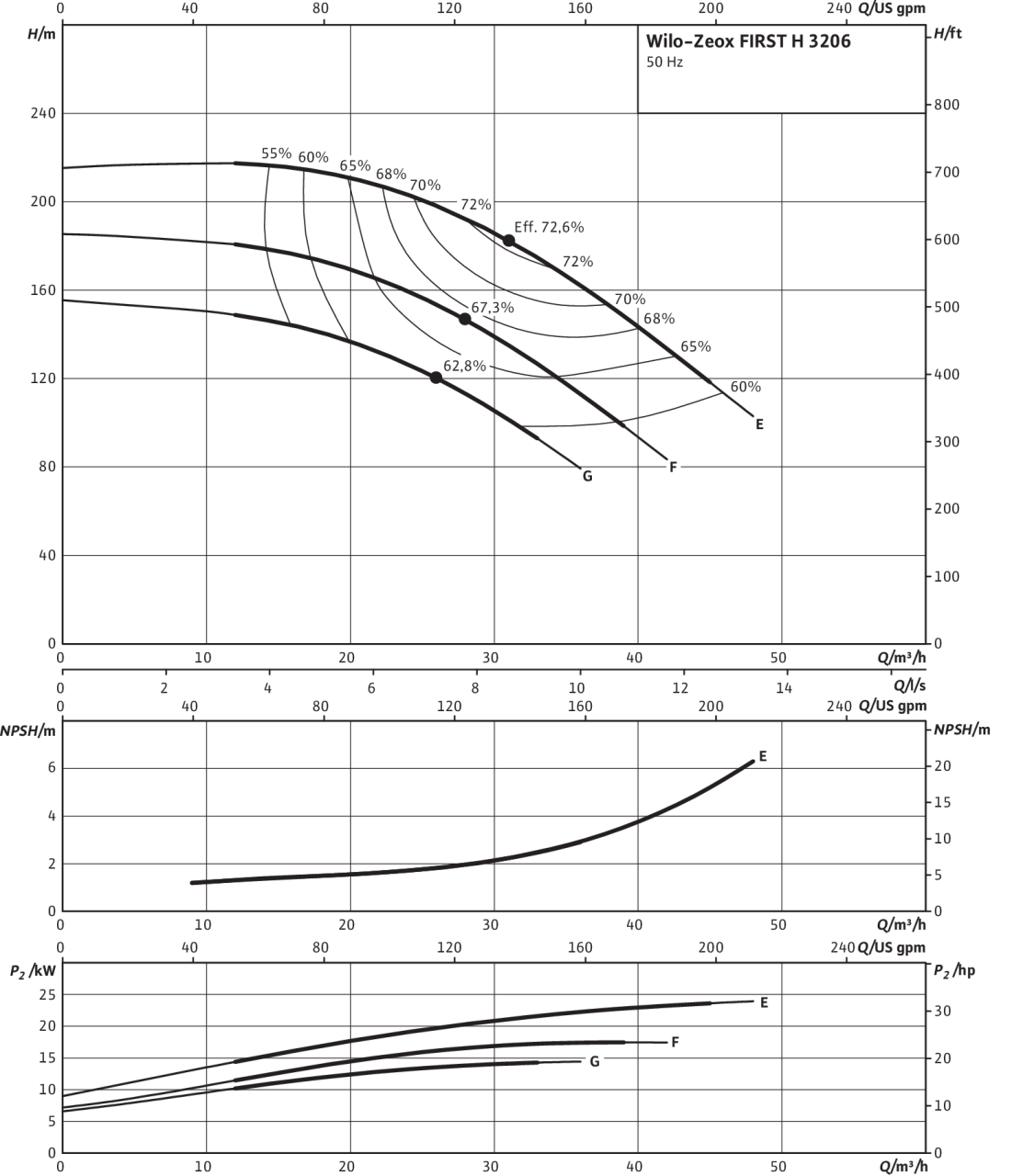 | Номинальный внутренний диаметр фланца (с напорной стороны) | DN 50 |