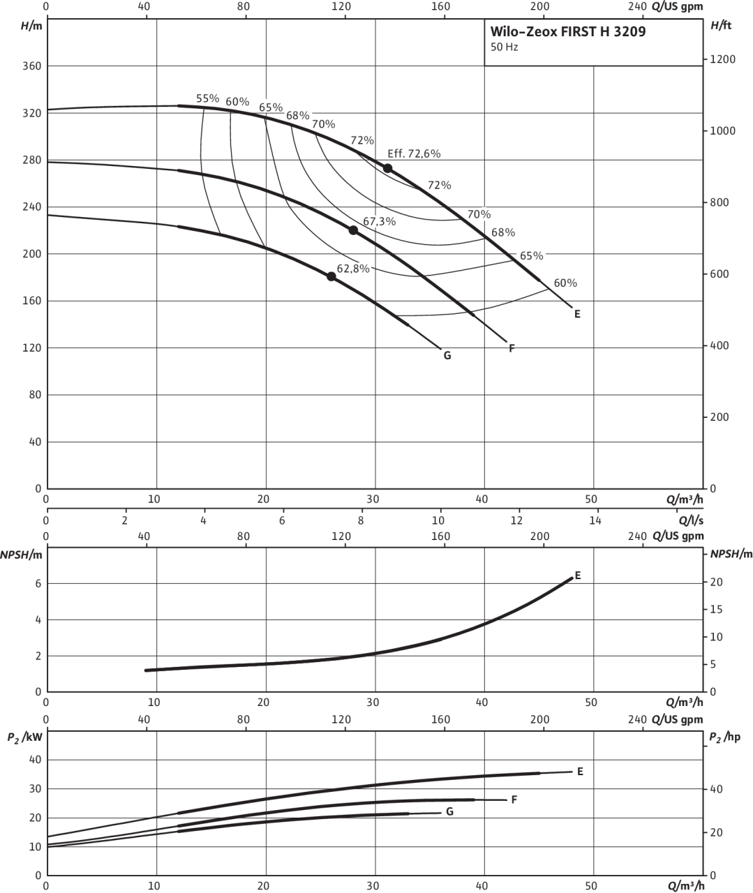 | Номинальный внутренний диаметр фланца (с напорной стороны) | DN 50 |