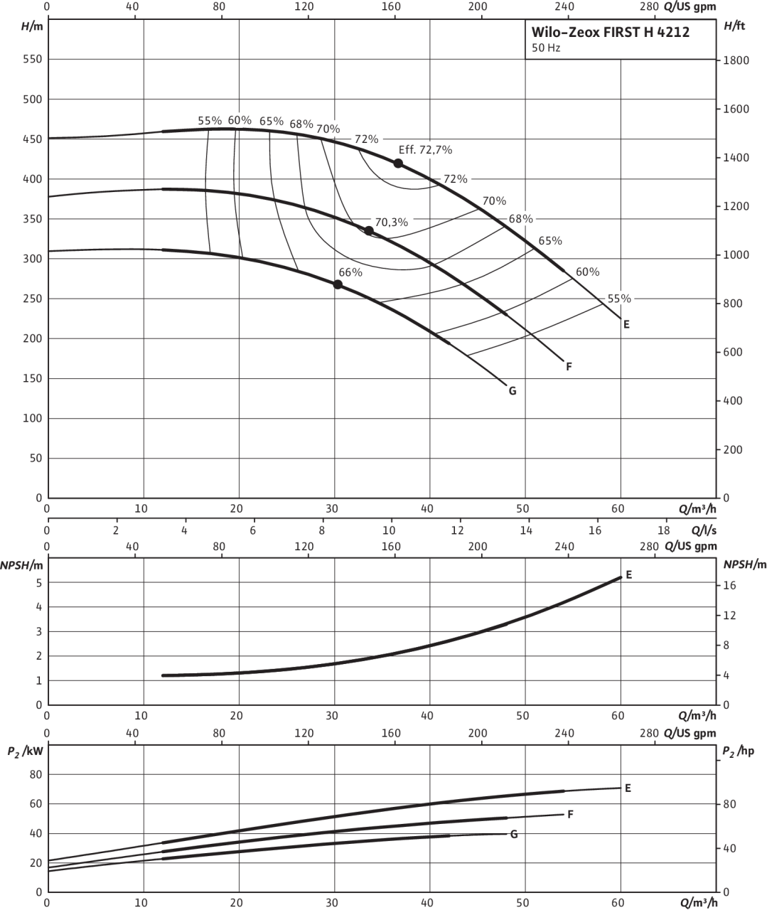 | Номинальный внутренний диаметр фланца (с напорной стороны) | DN 50 |