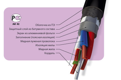 В кабеле ЗКПБм, ЗКАБпм поверх полиэтиленовой оболочки наложены защитные покровы с применением бронеленты толщиной 0,3 мм.